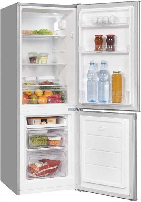 Verbrauchs-Eigenschaften - Angabe gem. EU-Verordnung 2019/2016 - Energieeffizienzklasse: Energieeffizienzklasse E - Energieeffizienzspektrum: Spektrum [A bis G] - Energieverbrauch in kWh/Jahr: 194 - 220-240V 50/60Hz Netzanschluss - Stromaufnahme (A): 0.7 Leistungseigenschaften - Anschlusswert (W): 100 - Klimaklasse: Klimaklasse N/ST - Gefrierteil oben/unten: Gefrierteil unten - Gefrierfach: 4-Sterne-Gefrierfach - Gefriervermögen in 24 Std. (kg): 2.6 - Lagerzeit bei Störung (Std.): 7 - gesamter Nutzinhalt (l): 173 - Nutzinhalt Kühlraum (l): 121 - Nutzinhalt Gefrierraum (l): 52 - elektronische Temperaturregelung - Geräusch-Schallleistung (dB): 40 - Geräuschemissionsklasse: Geräuschemissionsklasse C - Anzahl der Kompressoren: 1 Bedienung - wählbare Kühlteil-Temperatur - Tür offen-Warnsignal (Art): opt. Tür offen-Warnsignal - Abtauverfahren (Kühlraum): Abtauautomatik im Kühlraum - Abtauverfahren (Gefrierteil): manuelles Abtauen im Gefrierteil Kühlraum-Ausstattung - LED-Innenraum-Beleuchtung - Anzahl der Glas-Platten: 3 - höhenverstellbare Abstellflächen - Anzahl höhenverstellbarer Abstellflächen: 2 - Anzahl der Gemüseschalen: 1 Gefrierteil-Ausstattung - Anzahl Fächer/Schubladen, gesamt: 3 - Anzahl der Schubladen: 2 - Anzahl der Fächer: 1 - Gefriertablett - transparente Gefrier-Schubfächer Kühlschranktür-Ausstattung - Anzahl der Türregale: 3 Zubehör - Eiereinsatz - Anzahl der Eiereinsätze: 2 Gehäuse-Eigenschaften - Breite (cm): 50 - Höhe (cm): 142.5 - Tiefe (cm): 56 - Tiefe einschl. Wandabstand (cm): 59 - Tiefe bei geöffneter Tür (cm): 101 - Leergewicht (kg): 42 - Länge der Anschlussleitung (cm): 160 - Anzahl der Türen: 2 - Anschlagseite der Tür: Rechts-Anschlag der Tür - Tür-Anschlag wechselbar - Stellfüße vorn - höhenverstellbare Gerätefüße - integrierte Griffmulde Verpackungsangaben - Breite mit Verpackung (cm): 51.8 - Höhe mit Verpackung (cm): 148.4 - Tiefe mit Verpackung (cm): 57.8 - Gewicht mit Verpackung (kg): 46 Farben - Gehäuse-Farben: silber
