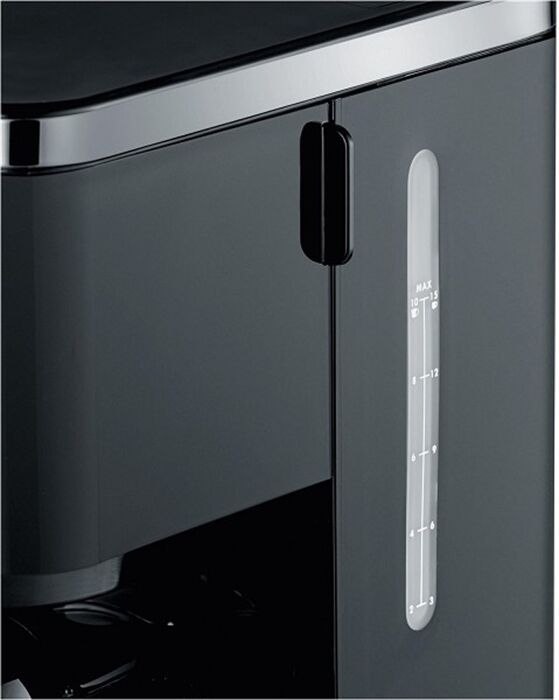 Leistungseigenschaften - Leistung (W): 1000 - 220-240V 50/60Hz Netzanschluss Tassen-Einheiten - Anzahl Tassen: 10 - Kannen-Volumen (l): 1.25 Brühverfahren - Vorbrühfunktion Filter-Eigenschaften - Filter-Typ: Schwenk-Filter - Tropfstopp Kannen/Wassertank-Eigenschaften - Kannen-Typ: Glas-Kanne - ergonomisch geformter Griff - Wasserstandsanzeige: Wasserstandsanzeige an Automat + Kanne technische Ausstattung - Abschaltfunktion: Abschaltfunktion - Warmhalte-Funktion - Ein-/Aus-Schaltung: beleuchteter Ein-/Aus-Schalter Gehäuse-Eigenschaften - Breite (cm): 17 - Höhe (cm): 34.5 - Tiefe (cm): 27 - Gewicht (kg): 2.2 - Front: Kunststoff-Gehäuse Verpackungsangaben - Breite mit Verpackung (cm): 24.4 - Höhe mit Verpackung (cm): 37.7 - Tiefe mit Verpackung (cm): 28 Farben - Gehäuse-Farben: schwarz