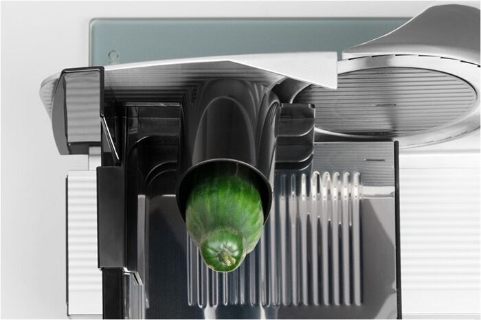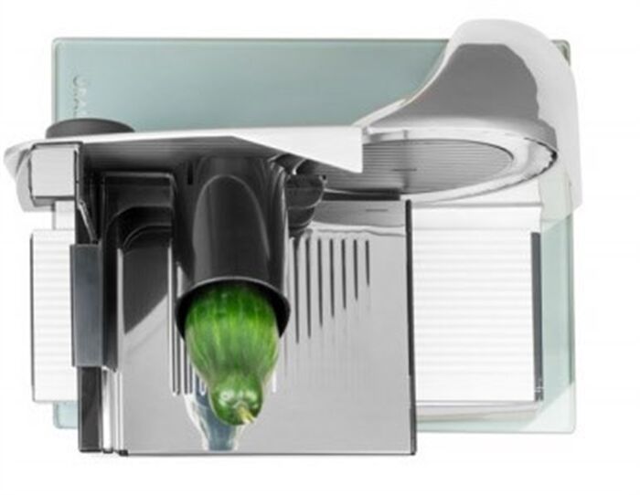 Der Graef MiniSlice Aufsatz ist die optimale Ergänzung zu einem Graef Allesschneider, um kleinere Zutaten sicher und komfortabel zu schneiden: Gemüse, Obst oder Salami fallen dem Messer durch einen Einfüllschacht mittels Schwerkraft entgegen. Sogar kleine Kartoffeln oder Pilze können mit hoher Geschwindigkeit ohne Reste und ohne Verletzungsgefahr in hauchdünne, ovale Scheibe geschnitten werden – das sorgt nicht nur für ein intensiveres Aroma und gleichmäßige Garpunkte sondern verkürzt auch die Garzeit beim Kochen. Geeignet für alle Graef Allesschneider mit eckiger Schlittenauflage (z.B. Master, Classic, Vivo, EVO, Tendenza, Futura,