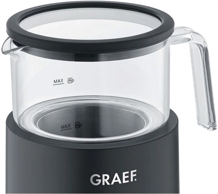 Nach der Zubereitung kann der herausnehmbare Glasbehälter des GRAEF Milchaufschäumers MS902 einfach in der Spülmaschine gereinigt werden.