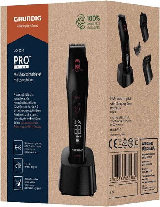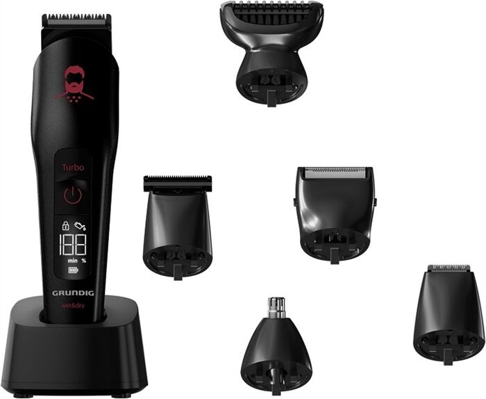 Spannungsversorgung - Li-Ionen Akku - Netzanschluß: automatische Spannungsanpassung - untere Grenze der Spannungsanpassung (V): 100 - obere Grenze der Spannungsanpassung (V): 240 - USB-Ladefunktion Schneid-Eigenschaften - min. Schnittlänge (mm): 1 - max. Schnittlänge (mm): 25 - Anzahl der Aufsteckkämme: 3 - Nass- und Trockenbetrieb - Schneidsätze: titanbeschichtetes Messer - selbstschärfende Messerklingen Bedienung - Schalter: Ein-/Aus-Schalter - Turbo-Stufe - Ladegerät: Ladestation - Betriebsdauer (Min.): 120 - Schnelllade-Funktion - Ladezeit (Std.): 1.5 - Display: LCD-Display Zubehör - Präzisionstrimmer - Nasen-/Ohrentrimmer - Bartstyling-Aufsatz - Etui: Aufbewahrungsbeutel Farben - Gehäuse-Farben: schwarz