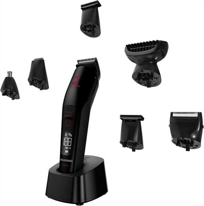 • Aufsätze: Schneidsatz für Haare und Bart, Nasen und Ohrhaarschneider-Aufsatz, Multi Blade-Aufsatz, Körperhaartrimmer-Aufsatz, Mini-Rasieraufsatz, Detail-Trimmer