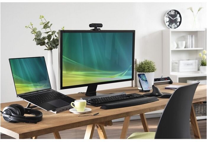 • Belichtungsanpassung passt das Bild an die Lichtbedingungen an, Stereo-Mikrofon sorgt für klar verständliche Sprachübertragung, Stand-/Klemmfuß zur Montage an TFT- und Notebookbildschirmen