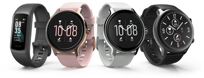 • Sportmodi, Stoppuhr, Telefonsuche, Timer, Trinkerinnerung, Uhr, Wecker, Wetteranzeige, Ziffernblätter