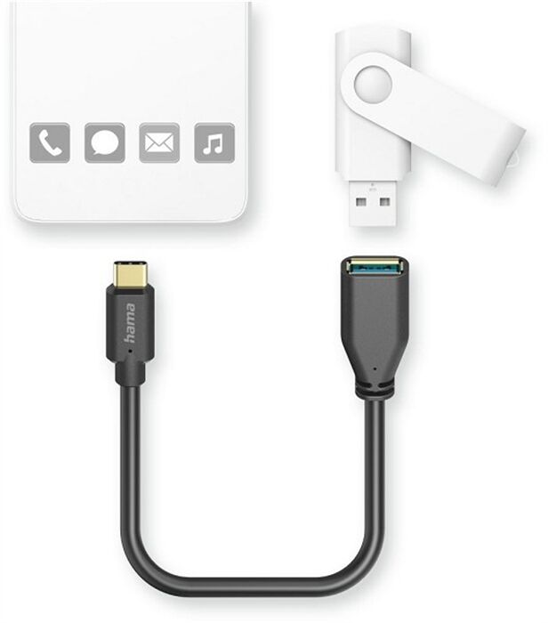 Artikeldetails für Hama USB-Adapterkabel (15cm) USB-C-Stecker>USB-A-Buchse (Schwarz)
