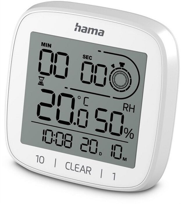 • Infache Bedienung über Front-Tasten Thermometer: Anzeige der Raumtemperatur 0°- +50°C, umschaltbar zwischen Grad Celsius und Fahrenheit Hygrometer: Anzeige der Luftfeuchtigkeit 20-95 %
