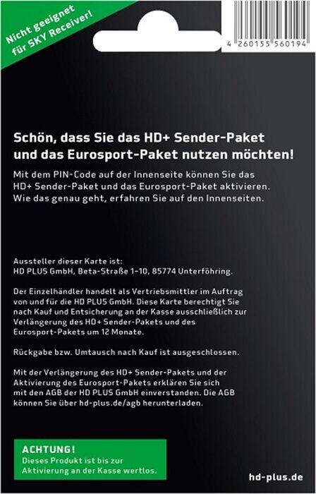 Artikeldetails für HD PLUS HD+ 12 Monate & EuroSport