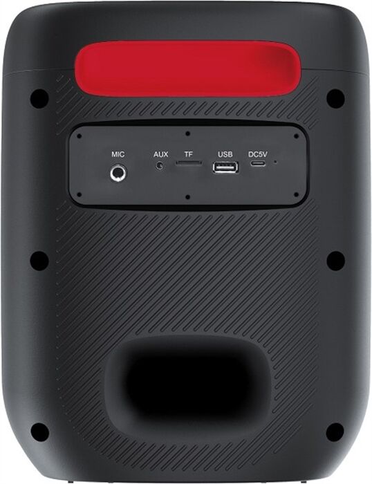 Leistungseigenschaften - Lautsprecher in Reihe schaltbar - DSP-Klangprozessor - MP3 kompatibel - WMA kompatibel - microSD-Card - Lautsprecher-System: Stereo-Ton über eingebaute Lautsprecher - Anzahl Tieftöner: 1 - Durchmesser Tieftöner (cm): 16.5 - Anzahl Hochtöner: 2 - Durchmesser Hochtöner (cm): 2.5 - Nennleistung (W): 50 - Betriebszeit mit Akku/Batterie (Std.): 10 - Batterieversorgung: Spannungsversorgung durch Akku Bedienung - Hall/Echo-Effekte einstellbar Anschlüsse - Aux (IN) - USB-Schnittstelle - Speicherkartenleser - Bluetooth-Schnittstelle - Mikrofon-Eingang Gehäuse-Eigenschaften - Breite (cm): 24.5 - Höhe (cm): 30 - Tiefe (cm): 24.5 - Gewicht (kg): 3.2 - LED-Lichtquelle