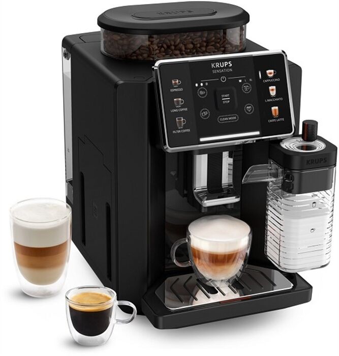 Genießen Sie mit den kompakten Krups Kaffeevollautomaten Sensation Milk, sämtliche Kaffee- und Milchspezialitäten wie Latte Macchiato und Cappuccino in Barista-Qualität - ganz einfach auf Knopfdruck..