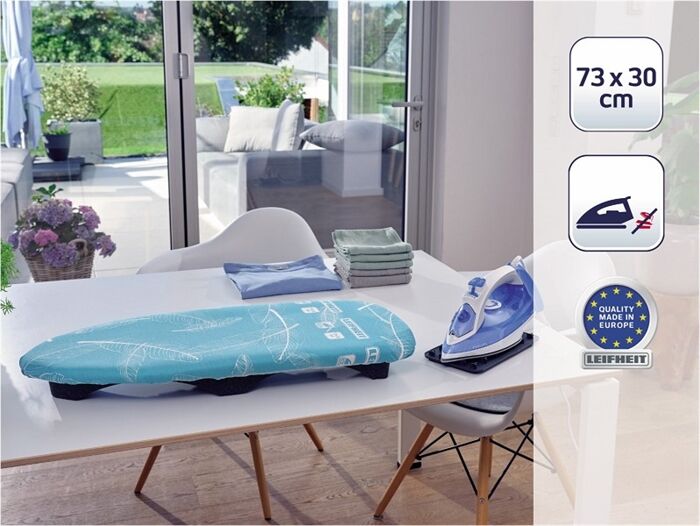 • Ultraleichte Bügelfläche (73 x 30 cm) aus Spezialkunststoff für leichten Auf- und Abbau