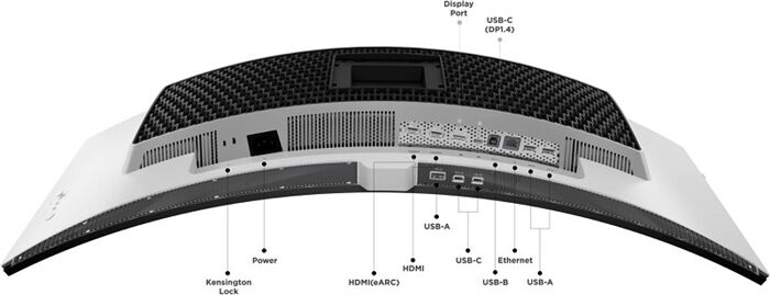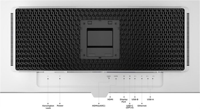 • 2x HDMI 2.1 (1x eARC), 1x DisplayPort 1.4, 1x USB-B 3.2 Gen 1 (Upstream), 1x USB-C 3.2 Gen 1 (Upstream), 3x USB-A 3.2 Gen 1 (Downstream), 2x USB-A 3.2 Gen 1 (Downstream), 1x Ethernet (RJ45)