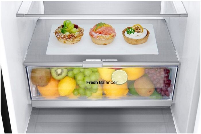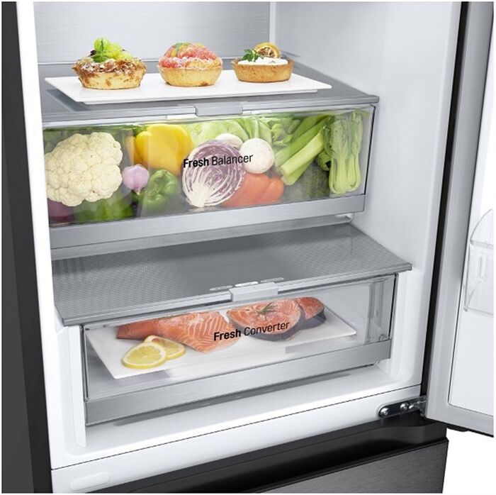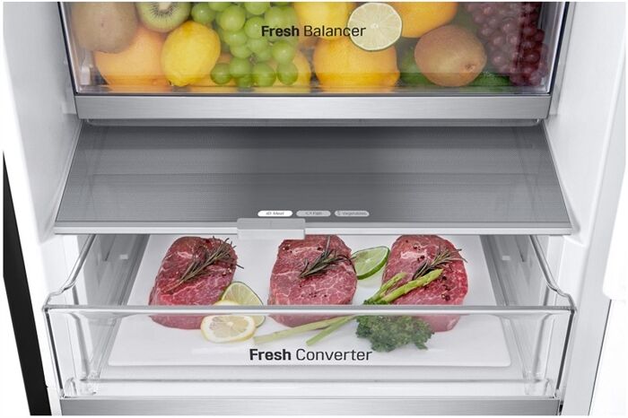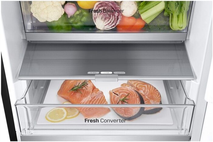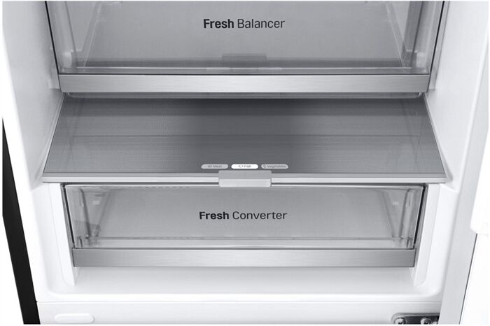 Dieses Gerät verfügt über ein FRESH Converter® -Fach, welches die Regulierung einer optimalen Luftzufuhr (und damit die Temperatur) mit einem Schiebe-Schalter für wahlweise Fisch, Fleisch oder Gemüse ermöglicht. Der FRESH Balancer® mit dem Moist Balance Crisper sorgt für die ideale Luftfeuchtigkeit bei der Lagerung von Gemüse und Obst.