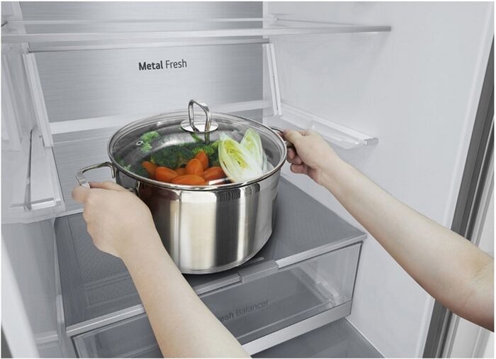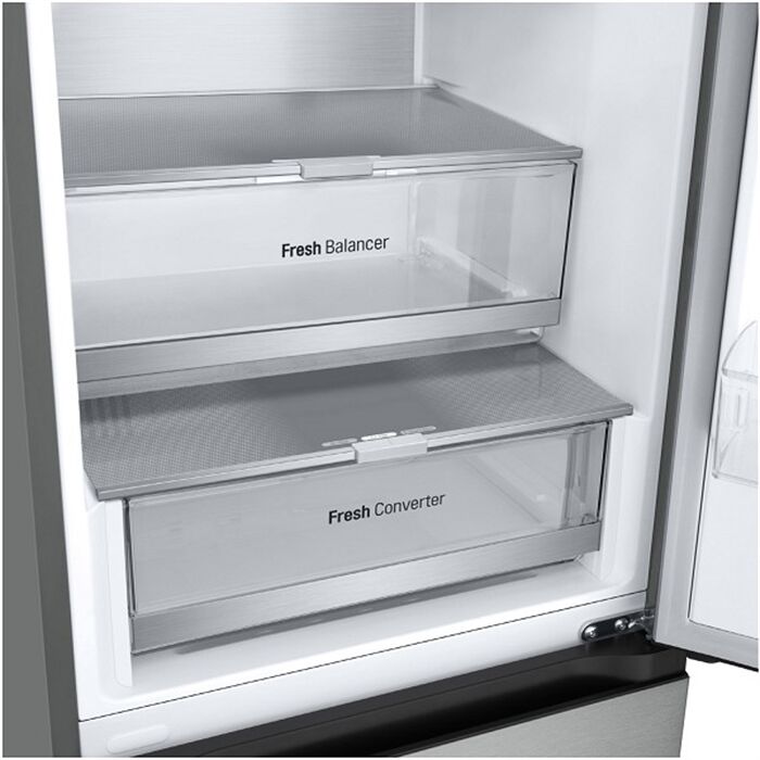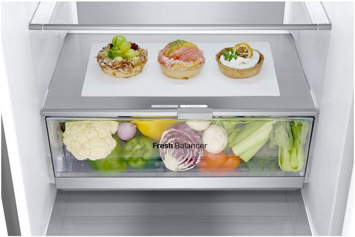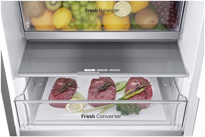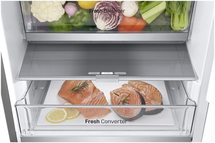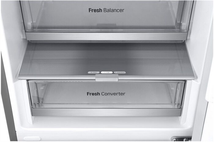 Dieses Gerät verfügt über ein FRESH Converter® -Fach, welches die Regulierung einer optimalen Luftzufuhr (und damit die Temperatur) mit einem Schiebe-Schalter für wahlweise Fisch, Fleisch oder Gemüse ermöglicht. Der FRESH Balancer® mit dem Moist Balance Crisper sorgt für die ideale Luftfeuchtigkeit bei der Lagerung von Gemüse und Obst.