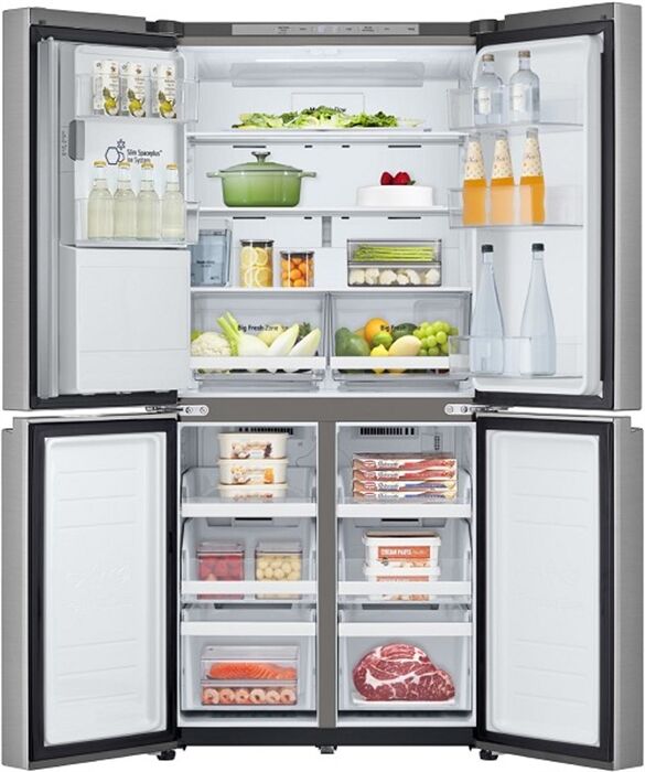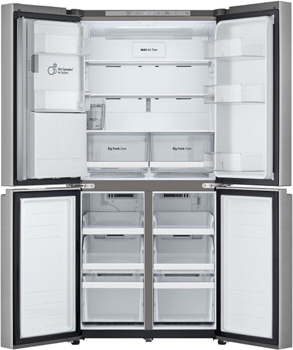 Verbrauchs-Eigenschaften - Angabe gem. EU-Verordnung 2019/2016 - Energieeffizienzklasse: Energieeffizienzklasse E - Energieeffizienzspektrum: Spektrum [A bis G] - Energieverbrauch in kWh/Jahr: 314 - Energieeffizienzindex: *: 100 - 220-240V 50/60Hz Netzanschluss - Absicherung (A): 16 Leistungseigenschaften - Anschlusswert (W): 2100 - Gefrierteil oben/unten: Gefrierteil unten - Gefrierfach: 4-Sterne-Gefrierfach - Gefriervermögen in 24 Std. (kg): 10 - Eismaschinen-Funktion: Eismasch. f. gestoß. Eis/-Würfel/-Wasser - Anzahl der Wassertanks: 1 - gesamter Nutzinhalt (l): 506 - Nutzinhalt Kühlraum (l): 286 - Nutzinhalt Gefrierraum (l): 220 - Superkühlen-Schaltung - Super-Gefrier/Super-Frost-Funktion - No-Frost-Technik gegen Vereisung - automatische Temperaturregelung - elektronische Temperaturregelung - Inverter-Technologie - optionale Smart Home Funktion - WLAN Ausstattung: WLAN integriert - Selbstdiagnose/Fehlerdiagnose - Geräusch-Schallleistung (dB): 40 - Geräuschemissionsklasse: Geräuschemissionsklasse C - Anzahl der Kompressoren: 1 Bedienung - Art der Temperaturanzeige: Temperatur-Digital-Anzeige - wählbare Kühlteil-Temperatur - wählbare Gefrierteil-Temperatur - Temperaturanstieg-Warnsignal (Art): akustisches Temperaturanstieg-Warnsignal - Abtauverfahren (Kühlraum): Abtauautomatik im Kühl- und Gefrierteil Kühlraum-Ausstattung - Umluft-Kühlen - LED-Innenraum-Beleuchtung - Anzahl der Sicherheitsglasplatten: 3 - Anzahl der Gemüseschalen: 2 Gefrierteil-Ausstattung - Umluft - Anzahl Fächer/Schubladen, gesamt: 6 - Anzahl der Schubladen: 6 - transparente Gefrier-Schubfächer Kühlschranktür-Ausstattung - Anzahl der Türregale: 5 Ausstattung - Apps ladbar Gehäuse-Eigenschaften - Breite (cm): 83.5 - Höhe (cm): 178.7 - Tiefe (cm): 73 - Tiefe bei geöffneter Tür (cm): 106.5 - Leergewicht (kg): 125 - Länge der Anschlussleitung (cm): 150 - Anzahl der Türen: 4 - Stellfüße vorn - höhenverstellbare Gerätefüße - Gerät mit Laufrollen - integrierte Griffmulde Verpackungsangaben - Breite mit Verpackung (cm): 88.5 - Höhe mit Verpackung (cm): 188.9 - Tiefe mit Verpackung (cm): 76.8 - Gewicht mit Verpackung (kg): 141 Farben - Gehäuse-Farben: silber