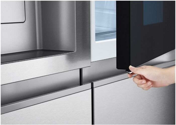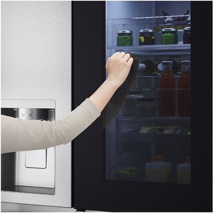 Door-in-Door®: schneller Zugriff auf beliebte Lebensmittel und Getränke. Das komfortable Door-in-Door® Konzept erleichtert den schnellen Zugriff auf häufig benötigte Lebensmittel und Getränke im Vergleich zu herkömmlichen Kühlgeräten ohne Door-in-Door® Funktion. Beim Öffnen der kleinen Door-in-Door® Tür anstatt der großen Haupttür entweicht bis zu 41 % weniger Kaltluft – so werden Temperaturschwankungen auf ein Minimum reduziert. Zudem überzeugen die Geräte der neuesten Generation mit über 9 % mehr Stauraum im Door-in-Door® Bereich und einem nahezu unsichtbaren Türgriff. Mit LG gehört die „Homebar“ somit der Vergangenheit an.