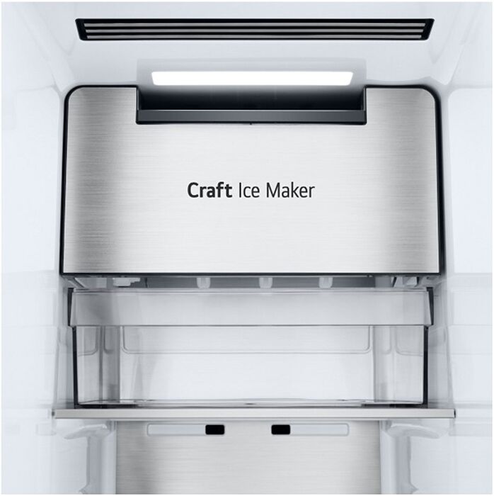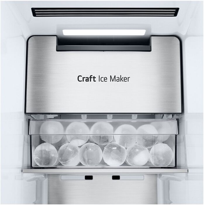 LG Craft Ice: perfekt runde und besonders langsam schmelzende Eiskugeln für stilvolle Drinks Craft Ice- Kugeln werden unter Druck hergestellt, sodass deutlich weniger Luftblasen zurückbleiben als bei herkömmlichen Eiswürfeln, wodurch große, nahezu klare Eiskugeln entstehen. Durch die runde Form und die komprimierte Beschaffenheit schmelzen Eiskugeln dazu noch 15% langsamer als herkömmliche Eiswürfel – so haben Sie länger kühle Drinks, die weniger verwässern und besser schmecken, und erleben das einzigartige Gefühl, Ihre Lieblingsgetränke mit LG Craft Ice zu genießen.