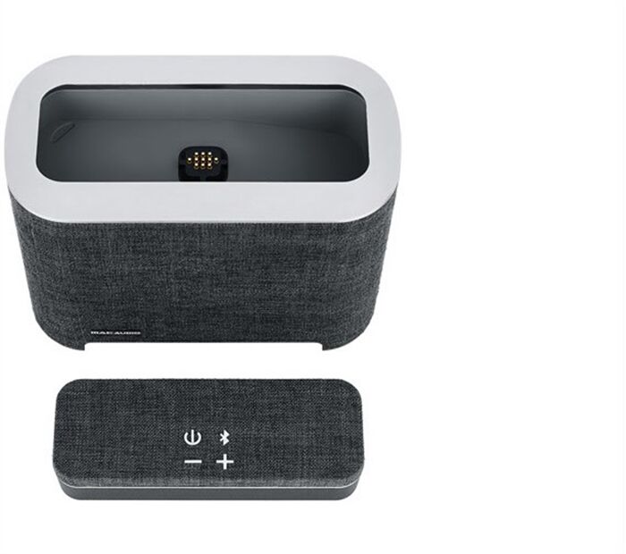 Leistungseigenschaften - interne Docking-Station - Integriertes Mikrofon - Freisprechfunktion - Lautsprecher-System: Stereo-Ton über eingebaute Lautsprecher - Anzahl Breitband-Lautsprecher: 2 - Durchmesser Breitband-Lautsprecher (cm): 3.8 - Durchmesser, Subwoofer (cm): 8.9 - Musikleistung (W), gesamt: 26 - Betriebszeit mit Akku (Std.): 6 - Batterieversorgung: Spannungsversorgung durch Akku Bedienung - Lautstärke-Regler Anschlüsse - Aux (IN) - Bluetooth-Schnittstelle