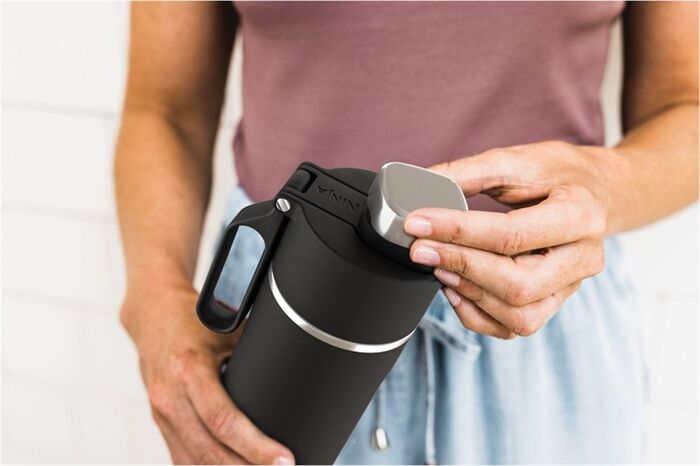 • Ninja Thirsti 530 ml Reiseflasche mit BPA-freiem, auslaufsicherem Deckel in schwarz