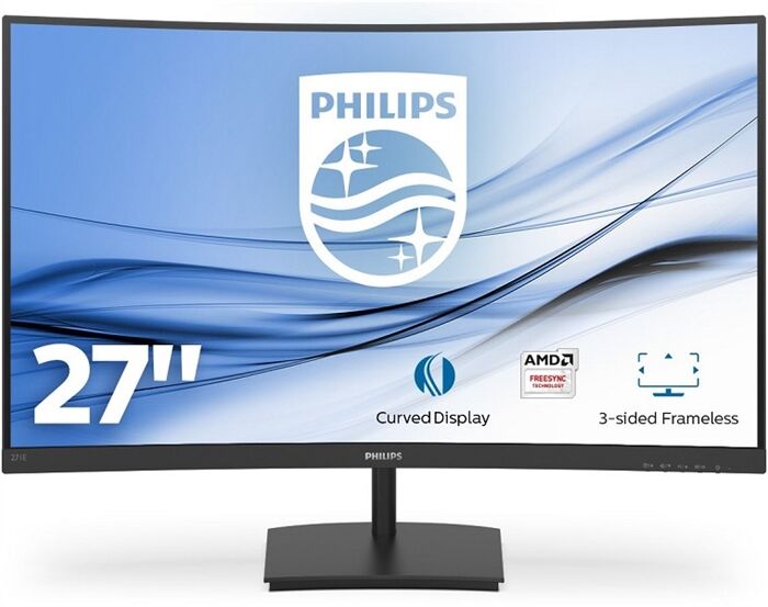 Bild-Eigenschaften - Bildschirmdiagonale (cm): 69 - Bildschirmdiagonale (Zoll): 27 - 16:9 Format - LCD-Panel-Typ: VA-Display - Bildpunktabstand (Dot-Pitch) (mm): 0.311 - Betrachtungswinkel, horizontal (Grad): 178 - Betrachtungswinkel, vertikal (Grad): 178 - Kontrast (x:1): 3000 - Leuchtdichte (cd/m²): 250 - Reaktionszeit (ms): 4 - Meßverfahren der Reaktionszeit: gray-to-gray Messverfahren - Display-Typ: Entspiegelt/Matt Elektronik-Eigenschaften - min. horizontale Ablenkfrequenz (KHz): 30 - max. horizontale Ablenkfrequenz (KHz): 85 - min. vertikale Ablenkfrequenz (Hz): 48 - max. vertikale Ablenkfrequenz (Hz): 76 - Maximalauflösung, horizontal (Punkte): 1920 - Maximalauflösung, vertikal (Punkte): 1080 - max. Auflösung erm. bei x Hz Bildfrequen: 75 - Punktdichte (ppi): 82 - Blaulichtfilter - Flimmerfrei (Flicker Free) - PC+MAC kompatibel - Gerät vorkonfiguriert (Plug+Play) - mittl. Lebensdauer MTBF (in Tsd. Std.): 50 - Gaming geeignet Bedienung - LED-Betriebszustandsanzeige - Bildschirmanzeigen (OSD) - Menü-Bedienung - mehrsprachiges Menü - Anzahl Menü-Sprachen: 21 - Lautstärke-Regelung - Signal-Eingangswahl Ton-Eigenschaften - Integrierte Lautsprecher - Anzahl der eingebauten Lautsprecher: 2 - Mono-/Stereo-/Surround-Sound: Stereo-Ton - Musikleistung (W), gesamt: 6 - Musikleistung (W), pro Kanal: 3 Anschlüsse - D-sub 15 pol. (IN) - HDMI-Schnittstelle: HDMI-Schnittstelle - Audio (IN) - Kopfhörer-Anschluß: Kopfhörer-Anschluss Leistungsaufnahme/Spannungsversorgung - Angabe gem. EU-Verordnung 2019/2013 - Netzfrequenz 50/60 Hz - Spannungsversorgung 100-240 V - Energieeffizienzklasse: Energieeffizienzklasse F - Energieeffizienzspektrum: Spektrum [A bis G] - Energieverbrauch (kWh/1000h): 25 Gehäuse-Eigenschaften - gebogenes Display - Breite (cm): 61.1 - Höhe (cm): 46.2 - Tiefe (cm): 20.2 - Gewicht (kg): 4.5 - verstellbarer Neigungswinkel - max. Neigungswinkel (Grad): 20 - Wandmontage möglich - VESA kompatibel - Befestigungslöcher (H):: 100 - Befestigungslöcher (V):: 100 - Diebstahlsicherung: Kensington-Lock - min. Umgebungstemperatur (°C): 0 - max. Umgebungstemperatur (°C): 40 - min. Luftfeuchtigkeit (%): 20 - max. Luftfeuchtigkeit (%): 80 Verpackungsangaben - Breite mit Verpackung (cm): 73 - Höhe mit Verpackung (cm): 52.4 - Tiefe mit Verpackung (cm): 16 - Gewicht mit Verpackung (kg): 6.7