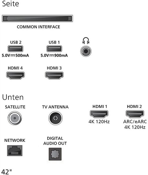 • DVB-T2/-C/-S2 Triple Tuner, 4x HDMI (eARC auf HDMI 2), HDMI 2.1, 2x USB, CI+, Digitaler Audio-Ausgang (optisch), LAN, WLAN 802.11ax (2x2 Dualband) & Bluetooth 5.2 integriert