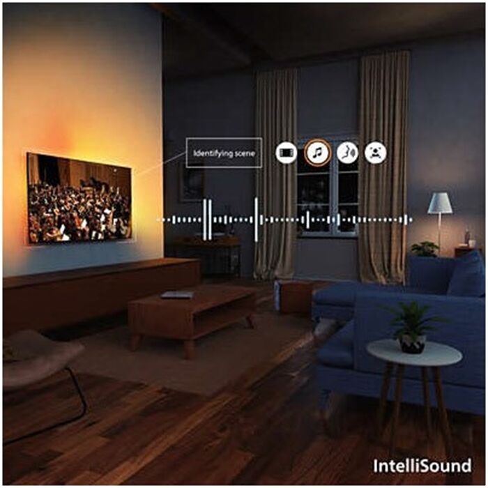Ambilight Plus passt sich der Klarheit und Dynamik Ihres Bildes an wie nie zuvor! Mit integrierten kuppelförmigen Objektiven auf der Rückseite des Fernsehers werden die Objektformen und -Bewegungen auf dem Bildschirm im Lichteffekt von Ambilight reflektiert. Möchten Sie die Stimmung ändern? Wählen Sie zwischen Kino-, Sport- oder Gaming- Modi, die zu Ihren Inhalten passen, oder lassen Sie den KI-Algorithmus die beste Einstellung für Sie auswählen.
