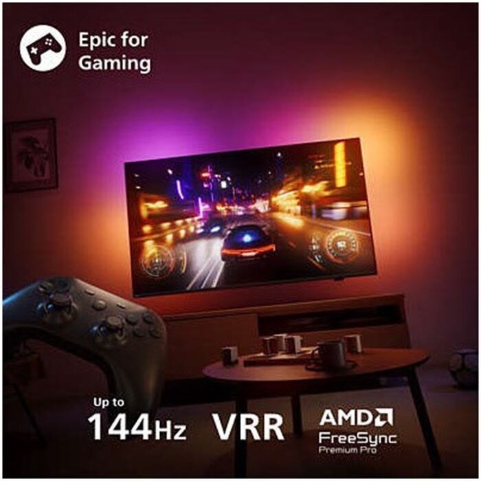 Dieser Ambilight TV bietet für Gaming-Sessions einen "Xtra"-Boost – mit HDMI 2.1, 144 Hz VRR und einer extrem niedrigen Eingangsverzögerung für flüssiges Gameplay! Mit der Game Bar 2.0 können Sie Einstellungen verbessern, ein personalisiertes Fadenkreuz, einen Shadow Enhancer und vieles mehr hinzufügen. Der Fernseher unterstützt PCGaming und bis zu vier Bluetooth-Controller für Cloud- oder Konsolenspiele.