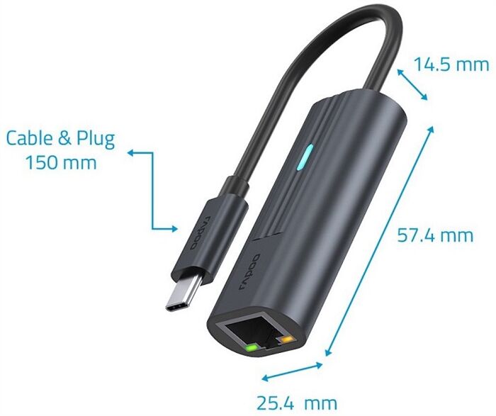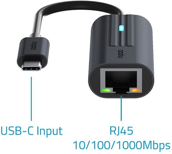 Artikeldetails für rapoo USB-C>Gigabit LAN Adapter (Grau)