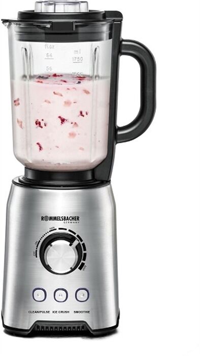 Dank 1200 Watt Hochleistungsmotor und einem speziellen Eiscrush-Programm ist der MX 1250 ein echter Cocktail Profi! Der elegante Standmixer von ROMMELSBACHER kann aber noch mehr: leckere, gesunde Smoothies aus frischen Früchten, schaumige Milchshakes, pürierte Suppen und Saucen lassen sich angenehm schnell und einfach zubereiten. Das Smoothie-Programm nimmt den Anwender hierbei die Steuerung der Drehzahl ab, arbeitet stufenweise mit Pause und schont dabei den Motor sogar bei der Zubereitung von Slush-Eis Kreationen. Der hochwertige, massive Glaskrug fasst 1,75 Liter, durch die praktische Deckelöffnung können die Zutaten nach und nach eingefüllt werden, die Skalierung hilft beim Abmessen. Das übersichtliche, beleuchtete Bedienfeld sorgt für ein einfaches Handling. Der 4-fach Schutz garantiert eine hohe Betriebssicherheit, so dass z. B. weder ein versehentliches Berühren der laufenden Messer noch eine unabsichtliche Benutzung möglich ist. Für die leichte Reinigung zwischendurch gibt es ein CLEAN Programm und zur gründlichen Endreinigung kann der Standmixer dann komplett zerlegt und die abnehmbaren Teile in die Spülmaschine gegeben werden. Ein edles Multitalent für die anspruchsvolle Küche, das außerdem durch geprüfte Sicherheit punktet!