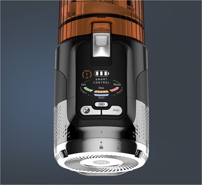 • SMARTES DISPLAY mit Kontrollanzeige: Live-Überwachung der Saugleistung (4 Modi: Auto, Eco, Max, Boost), Erinnerung an die Filter-Reinigung und Anzeige der verbleibenden Laufzeit