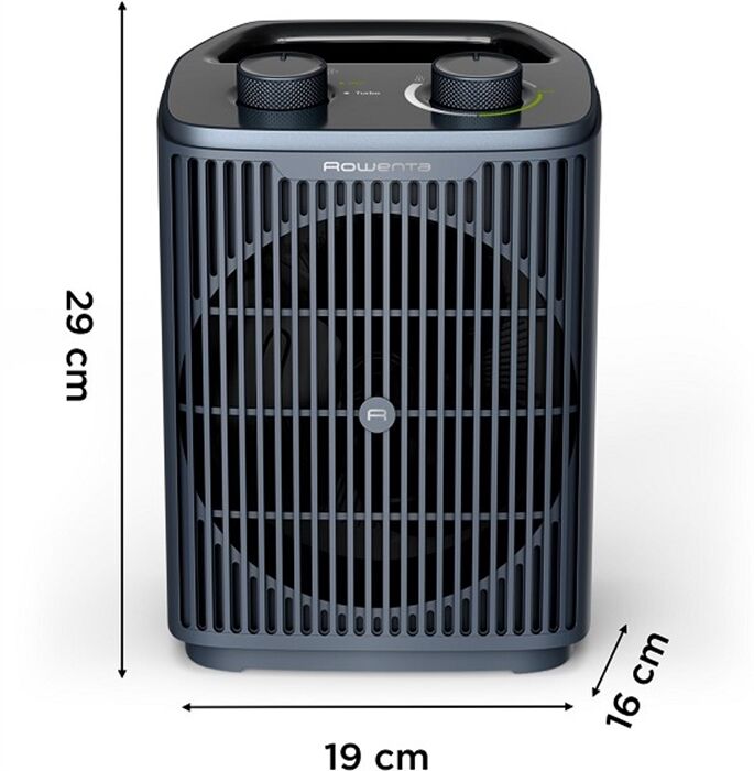 Kompaktes Heizgerät mit Thermostat, Überhitzungsschutz und Kühlstufe.