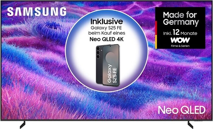 • ** Aktions-TV kaufen und ein Galaxy S25 FE (128 GB) gratis dazu erhalten. Aktionszeitraum: 17.11.2025 bis 11.01.2026 / samsung.de/allesdeins