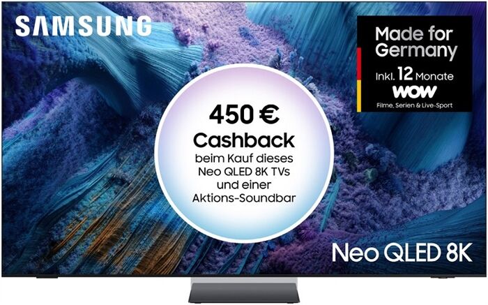 Jetzt haben Sie Gelegenheit, sich ultimatives Fernsehen nach Hause zu holen und dabei eine stolze Summe zu sparen: Wer sich zwischen dem 30. Juni und dem 16. November 2025 für ein TV Gerät + Sondbar entscheidet, erhält bis zu 4.000 € Cashback