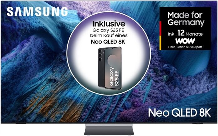 • ** Aktions-TV kaufen und ein Galaxy S25 FE (128 GB) gratis dazu erhalten. Aktionszeitraum: 17.11.2025 bis 11.01.2026 / samsung.de/allesdeins