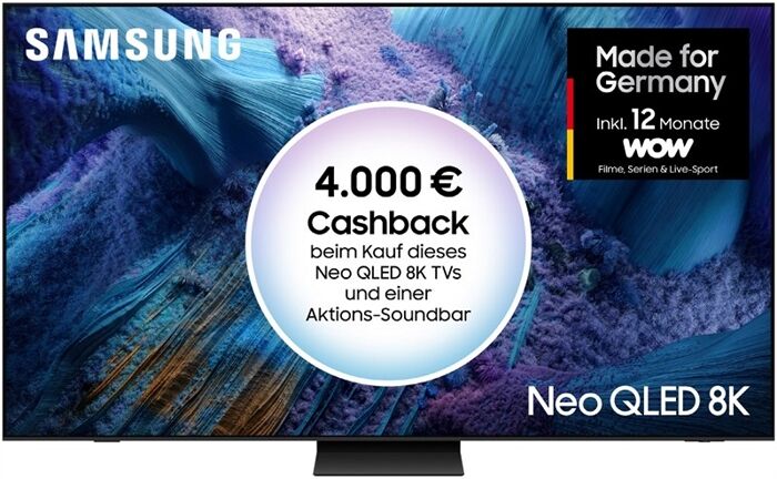 Jetzt haben Sie Gelegenheit, sich ultimatives Fernsehen nach Hause zu holen und dabei eine stolze Summe zu sparen: Wer sich zwischen dem 30. Juni und dem 16. November 2025 für ein TV Gerät + Sondbar entscheidet, erhält bis zu 4.000 € Cashback