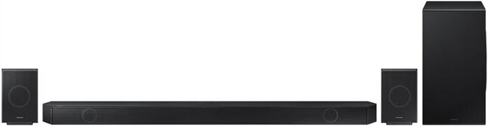 Bestehend aus: - Soundbar - Surround-Lautsprecher - Subwoofer Leistungs-/Elektronikeigenschaften - Anzahl Kanäle: 11.1 - Anzahl Dolby-Atmos-Signal-Kanäle: 4 - integrierter Center-Lautsprecher - Dolby Atmos - Dolby-Digital-Plus kompatibel - Digital-Theater-Systems (DTS) kompatibel - Dolby-TrueHD kompatibel - Anzahl vorprogrammiert. EQ-Einstellungen: 4 - autom. Pegeleinmessung über Mikrofon - Datenverbindung zwischen Video und TV - kompatibel für 4K Auflösung - HDR-Wiedergabe - Hi-Res Audio - AAC + MP3 Standard - WAV kompatibel - OGG-Vorbis kompatibel - FLAC kompatibel - Apple Lossless (ALAC) kompatibel - Sinusleistung (W), gesamt: 656 Bedienung - Amazon Alexa kompatibel - Chromecast (Google Cast) - Sprachsteuerung möglich - Fernbedienung - steuerbar über Smartphone/Tablet - Funktionserweiterung über Apps - Night-Modus (angepasste Effektlautstärke) Lautsprecher-System: - Dolby Atmos Lautsprecher integriert - Anzahl der eingebauten Lautsprecher: 22 - Wandmontage möglich Surround/Sat.-Lautsprecher - kabellose Surround-LS Ansteuerung Subwoofer - Aktiv-Subwoofer - kabellose Funk-Signalübertragung - Musikleistung, Subwoofer (W): 200 Anschlüsse - Anzahl Digital-Optisch (IN): 1 - AirPlay fähig - WLAN-Schnittstelle - Bluetooth-Schnittstelle Leistungsaufnahme - Leistungsaufnahme (W): 86 - Leistungsaufnahme, Stand-By (W): 1 Gehäuse-Eigenschaften - Breite, Lautsprecher (cm): 123.2 - Höhe, Lautsprecher (cm): 6.95 - Tiefe, Lautsprecher (cm): 13.8 - Gewicht, Lautsprecher (kg): 7.7 - Breite, Surround-Lautsprecher (cm): 12.95 - Höhe, Surround-Lautsprecher (cm): 20.13 - Tiefe, Surround-Lautsprecher (cm): 14.04 - Gewicht, Surround-Lautsprecher (kg): 3.4 - Breite (cm): 22 - Höhe (cm): 41.3 - Tiefe (cm): 41 - Gewicht (kg): 11.7 Verpackungsangaben - Breite mit Verpackung (cm): 130.9 - Höhe mit Verpackung (cm): 59.5 - Tiefe mit Verpackung (cm): 27.7 - Gewicht mit Verpackung (kg): 28.2 Farben - Gehäuse-Farben: schwarz