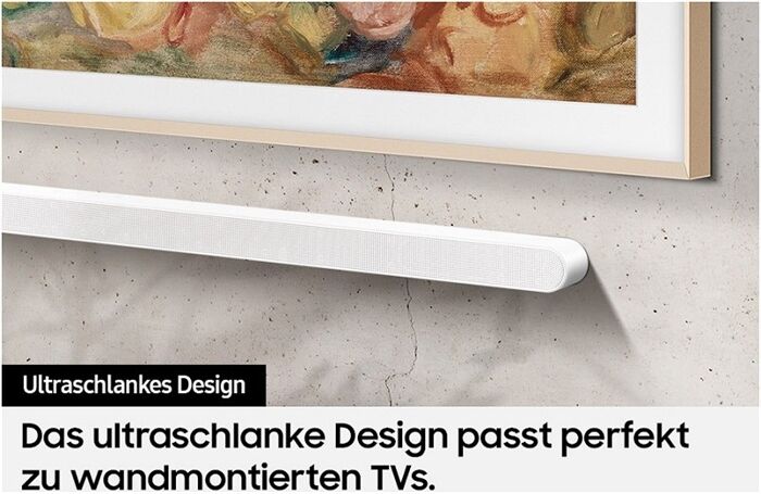 • Die schlanke Eleganz des Ultra Slim Designs bietet zusammen mit deinem TV (55" und kleiner) ein atemberaubendes Sounderlebnis
