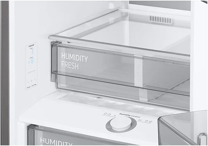 Erhalte die natürliche Struktur, den Geschmack und das Aroma deiner Lebensmittel. Du kannst die Feuchtigkeit in der Humidity Fresh+ Schublade einfach über einen Drehregler anpassen. Dadurch kann ein ideales Umfeld für dein Obst und Gemüse geschaffen werden, damit alles knackig, frisch und saftig bleibt.