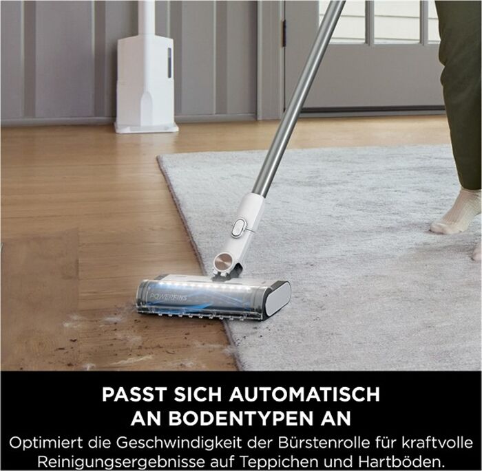 Perfekt für alle Bodentypen: Die Bürstenrolle optimiert automatisch die Geschwindigkeit für die Tiefenreinigung von Teppichen und sorgt für einen kontinuierlichen Kontakt auf Hartböden.