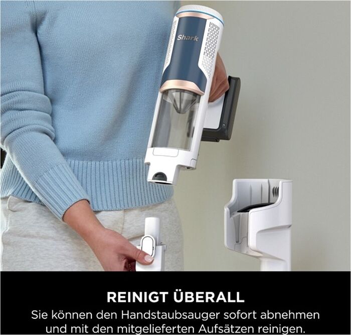 • Der Handstaubsauger kann einfach abgenommen werden, um mit dem mitgelieferten Zubehör überall zu reinigen.