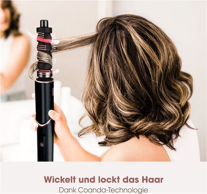 • 2 Lockenaufsätze (für beide Richtungen): Die Coanda-Technologie wickelt und lockt das Haar - für mühelose Locken in Sekundenschnelle