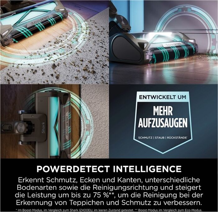 Reinigung, so einfach wie noch nie: Die Shark PowerDetect-Technologie konzentriert sich nicht nur auf deine Böden.
