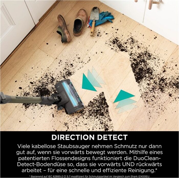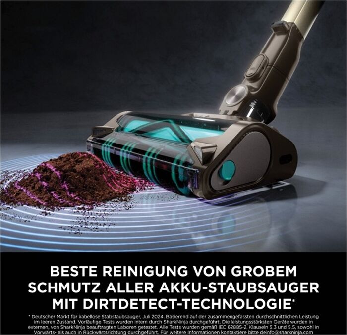 Erlebe die beste Reinigung von grobem Schmutz aller Akku-Staubsauger mit DirtDetect-Technologie* und die stärkste kabellose Saugkraft** von Shark.