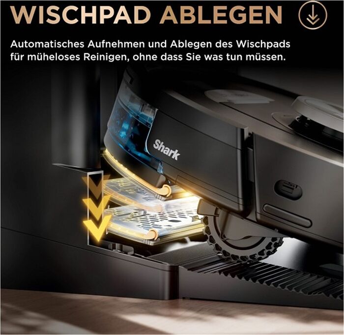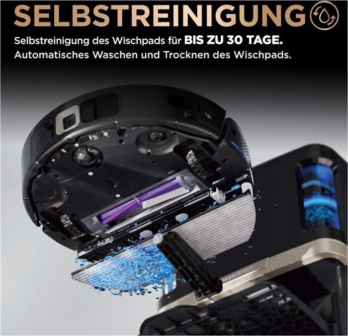 • Selbstreinigend: Wäscht und trocknet das Wischpad,