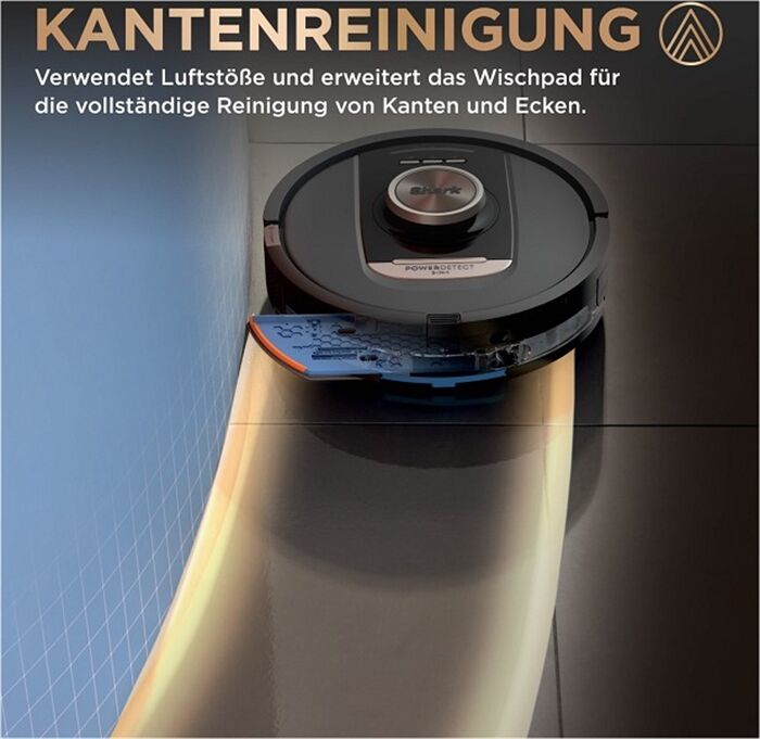 - Wet Edge Detect fährt das Wischpad aus, um Ecken und Kanten zu erreichen, damit Ihre Böden von Ecke zu Ecke und so nah wie möglich an den Kanten gereinigt werden.