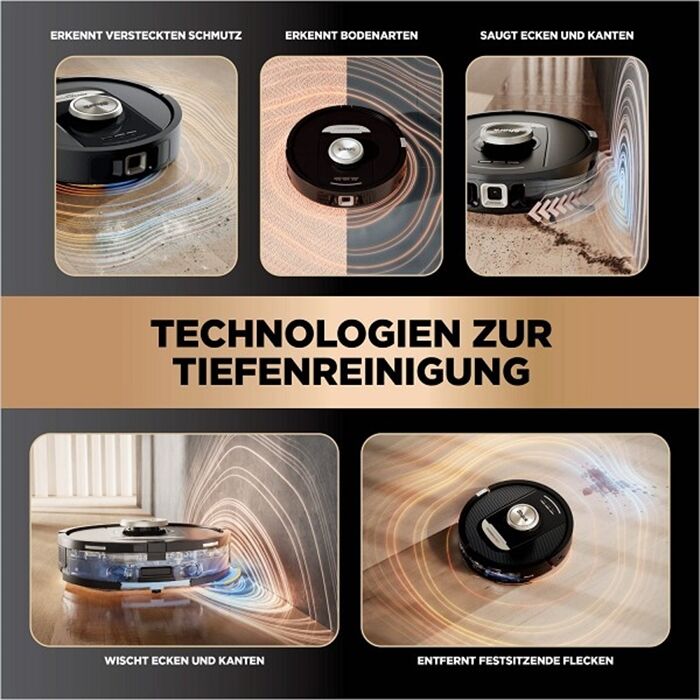 PowerDetect Reinigungstechnologie: Optimiert jede Reinigung, indem sie Ihr Zuhause erkennt und auf die Umgebung reagiert und Hindernissen ausweicht, um sicherzustellen, dass der Roboter die Arbeit immer zu Ende bringt.