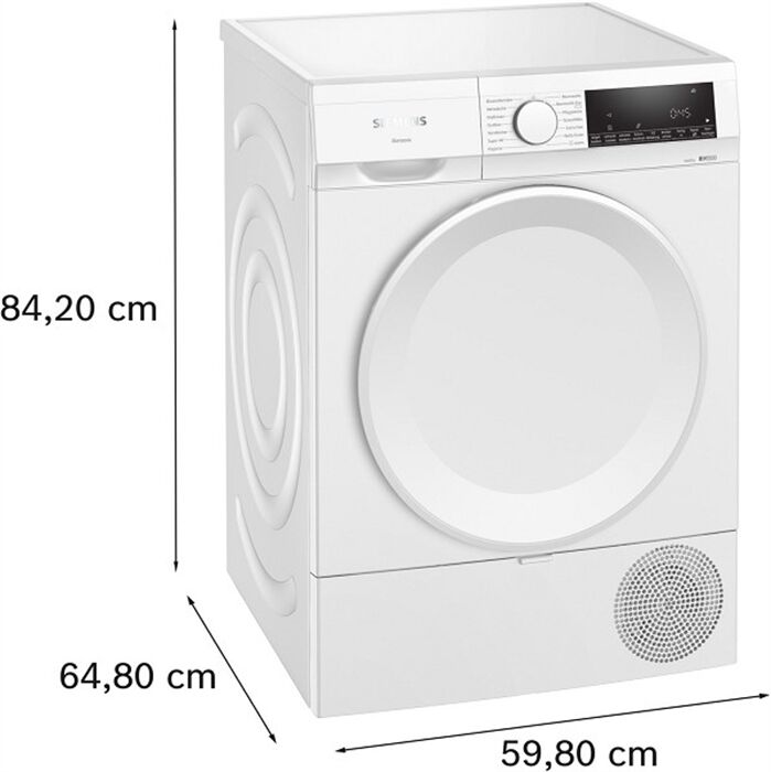 Leistungseigenschaften - Angaben nach 2010/30/EU - Anschlusswert (kW): 0.6 - Fassungsvermögen Trockenwäsche (kg): 8 - Trockner-Typ: Kondensation - Energieeffizienzklasse: Energieeffizienzklasse A+++ - Energieeffizienzspektrum: Spektrum [A+++ bis D] - geschätzter Jahres-Energieverbr. (kWh): 176 - Steuerung der Trocknung: Trocknungsgradregelung automatisch - Stromverbrauch (kWh): 1.4 - gemessen bei x U/Min.-geschl. Wäsche: 1000 - gemessen bei Trocken-Wäschemenge (kg): 8 - gemessen bei Stoffart: gemessen bei Baumwolle - gemessen bei Programm: gemessen bei Schranktrocken-Programm - Stromverbrauch bei Teilbefüllung: 0.84 - Leistungsaufnahme, Netz-Aus (W): 0.15 - Leistungsaufnahme, Stand-By (W): 0.5 - Programmdauer (Min.): 165 - Programmdauer Min. Teilbefüllung: 108 - Kältemittelart: R 290 - Kältemittelmenge in kg: 0.135 - Kondensationseffizienzklasse : Kondensationseffizienzklasse A - gewichtete Kondensationseffizienz: * %: 91 - Kondensationseffizienz vollständig: * %: 91 - Kondensationseffizienz Teilbefüllung: *%: 91 - Betriebsgeräusch (dBA): 64 - Elektronische Steuerung - Absicherung: 10 A Absicherung - 220-240V 50/60Hz Netzanschluss Automatik-Funktionen - Wärmepumpe - elektr. Feuchtigkeitsmessung - Knitterschutz - Dauer des Knitterschutzes (Min.): 60 Bedienung - Programmwahl: Ein-Knopf-Programmwahl - Start-/Pause-Taste - Schon-Taste für niedrigere Temperaturen - Taste für 1/2 Beladungsmenge - Beladungsempfehlung - Programmende vorwählbar - Start-Vorwahl - max. vorprogrammierbare Startzeit (Std.): 24 - Restzeitanzeige: Restzeitanzeige - Programmanzeige: Programm-Ablaufanzeige - Programmende-Signal: akustisches Programmende-Signal - akustische Signal-Einstellung: Signal an- und abstellbar - Display-Anzeige - Klartext-Bedienfeld - Kindersicherung Programme - Baumwolle-Programm - Pflegeleicht-Programm - Fein-Programm - Auflockerungsprogramm für Wolle - Bettwäsche-Programm - Große Wäschestücke-Programm - Blusen/Hemden-Programm - Mischwäsche-Programm - Handtücher-Programm - Outdoor-/ Sport-Programm - Hygiene-Programm - Kurz-Programm - Schnelltrocknungs-Programm - Energiespar-Programm - Zeitwahl-Programme - Feinabstufungen innerhalb der Programme Trommel-/Trocken-Eigenschaften - Trommel-Material: Edelstahl-Trommel - Trommel mit Links-/Rechtsdrehung - Trommel-Struktur: Schontrommel Gehäuse-Eigenschaften - einschubfähiges Gerät - Breite (cm): 59.8 - Höhe (cm): 84.2 - Höhenverstellung - Höhe um x cm verstellbar: 1.5 - Tiefe (cm): 61.3 - Tiefe bei geöffneter Tür (cm): 109.6 - Tiefe über alles (cm): 64.8 - Leergewicht (kg): 50.9 - Anschlagseite der Tür: Rechts-Anschlag der Tür - höhenverstellbare Gerätefüße - Flusensieb in der Türöffnung - Kondenswasser-Behälter in der Blende - Direkter Kondenswasserablauf möglich - Abpump-Bausatz: Bausatz zum Abpumpen nachrüstbar - Länge der Anschlussleitung (cm): 145 Einbau-Eigenschaften - Nischen-Höhe (cm): 85 Verpackungsangaben - Breite mit Verpackung (cm): 63 - Höhe mit Verpackung (cm): 89 - Tiefe mit Verpackung (cm): 67 - Gewicht mit Verpackung (kg): 52 Farben - Gehäuse-Farben: weiß