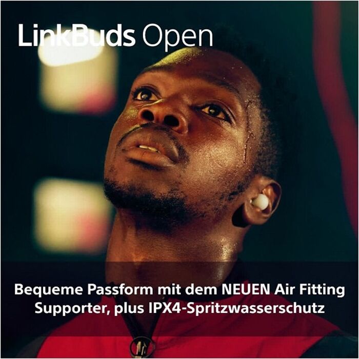 • LinkBuds Open bieten Komfort und Stabilität mit dem NEUEN Air Fitting Supporter und sind zudem wasserdicht
