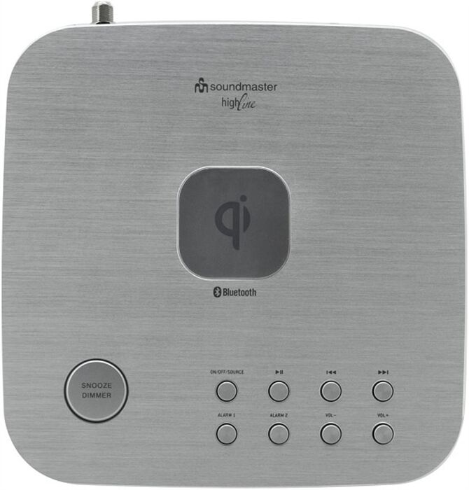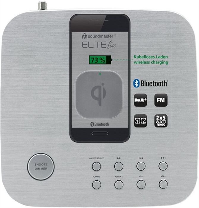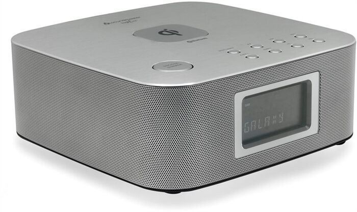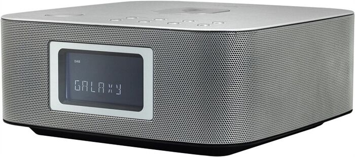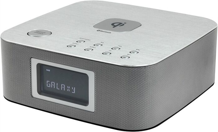 Empfangseigenschaften - Tuner-Typ: PLL-Synthesizer-Tuner - Tuner-Empfang: Tuner für UKW/DAB+ - Radio-Data-System (RDS) Bedienung - Fernbedienung Uhrenteil - Weckfunktion - Anzahl Weckzeiten: 2 - Wecken durch Signalton - Wecken durch Radio - Snooze-Funktion - Sleep-Funktion Display/Anzeigen - Display am Gerät - Display-Typ: LCD-Display, beleuchtet - Uhrzeit-Anzeige - Helligkeit regelbar: Helligkeit regelbar - Datum-Anzeige Ton-Wiedergabe/Einstellung - Lautsprecher: Stereo-Ton über eingebaute Lautsprecher - Sinusleistung (W): 10 - Sinusleistung (W), pro Kanal: 5 - Equalizer Anschlüsse - Bluetooth-Schnittstelle - USB-Schnittstelle - Aux-Anschluss (IN) Spannungsversorgung - Netzanschluss 220-240V 50/60Hz - Netzausfall-Sicherung gestützt durch:: Netzausfall-Sicherung durch Batterie - USB-Ladefunktion für externe Geräte Gehäuseeigenschaften - externe Docking-Station - Qi Standard - Breite (cm): 21 - Höhe (cm): 8.7 - Tiefe (cm): 19.8 Farben - Gehäuse-Farben: silber