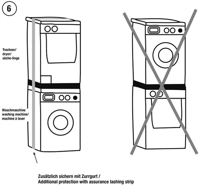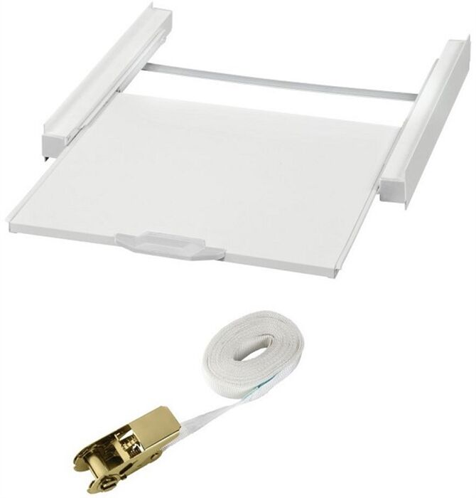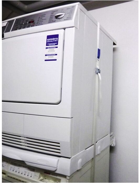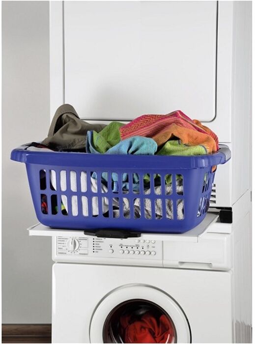 • universeller Zwischenbaurahmen zum sicheren Befestigen des Trockners auf der Waschmaschine: Die Seitenschienen verhindern das Wandern des Trockners bei Vibrationen der Waschmaschine