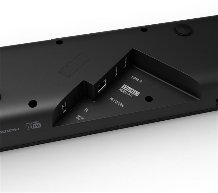 Bestehend aus: - Soundbar Leistungs-/Elektronikeigenschaften - integrierter Bass/Subwoofer - virtueller Surround-Sound - Dolby Atmos - Dolby-Digital (AC-3) kompatibel - Anzahl vorprogrammiert. EQ-Einstellungen: 4 - Datenverbindung zwischen Video und TV - kompatibel für 4K Auflösung Bedienung - steuerbar über Smartphone/Tablet Anschlüsse - Anzahl Digital-Optisch (IN): 1 - Anzahl HDMI-Schnittstellen (IN): 1 - Anzahl HDMI-Schnittstellen (OUT): 1 - WLAN-Schnittstelle - Bluetooth-Schnittstelle Leistungsaufnahme - Leistungsaufnahme (W): 36 - Leistungsaufnahme, Stand-By (W): 0.5 Gehäuse-Eigenschaften - Breite, Lautsprecher (cm): 101.5 - Höhe, Lautsprecher (cm): 6.3 - Tiefe, Lautsprecher (cm): 11.2 - Gewicht (kg): 3.9 Farben - Gehäuse-Farben: schwarz